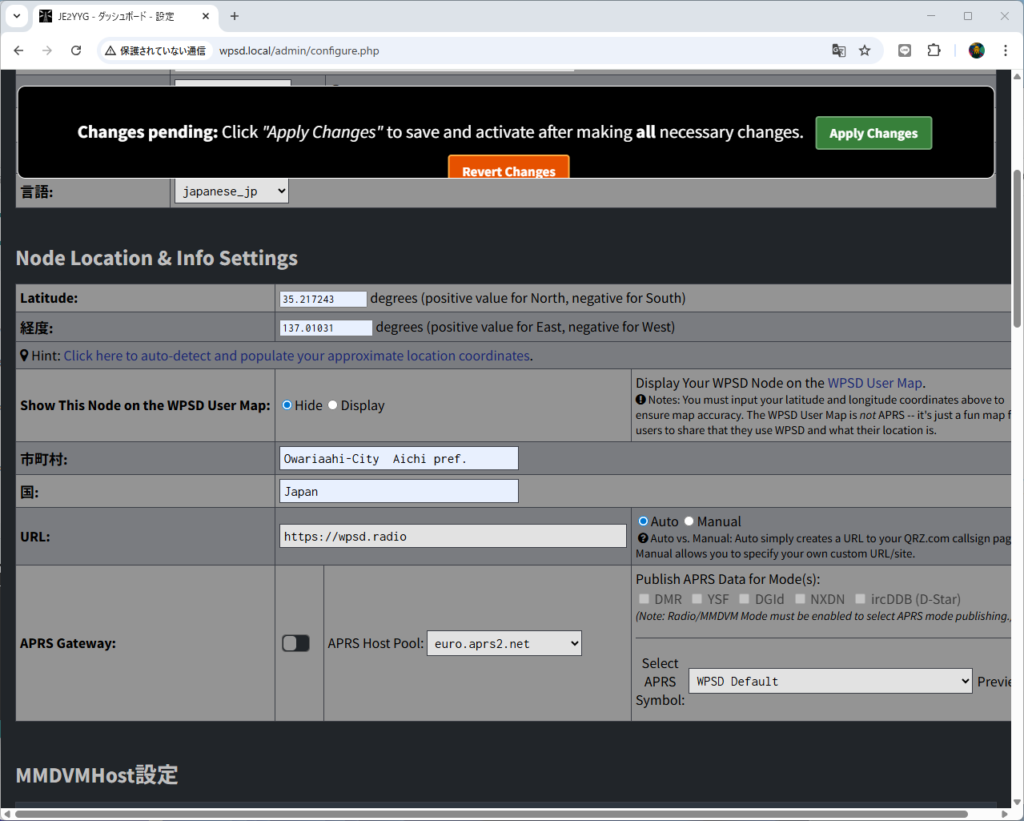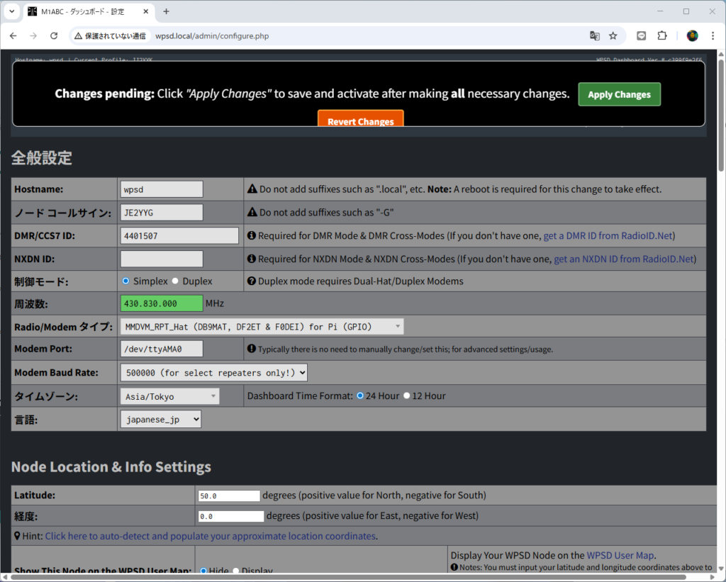 wpsd - ノードコールサイン: